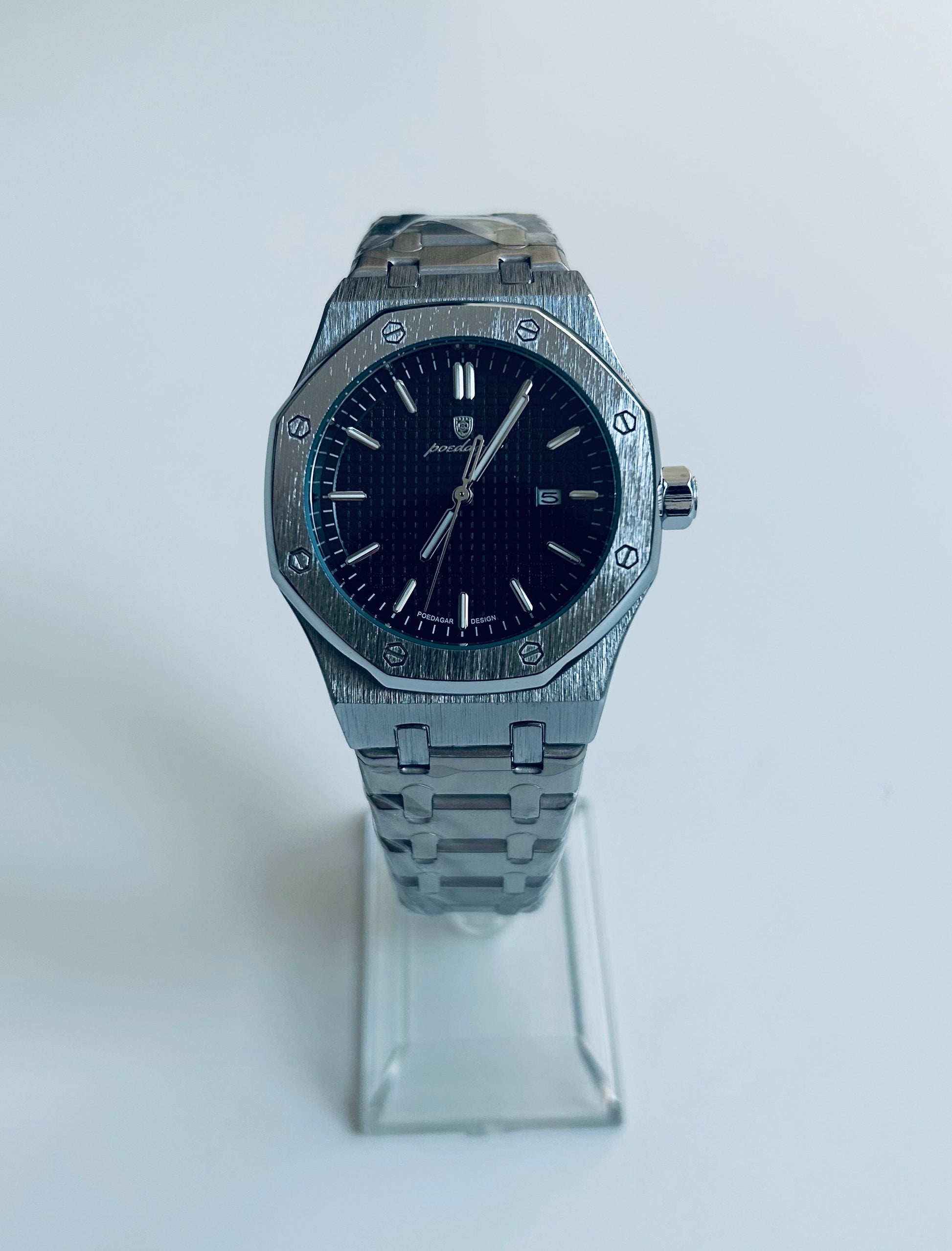 Une montre qui allie parfaitement sobriété et caractère. L’acier est solide, le mécanisme précis, et elle fait son petit effet !