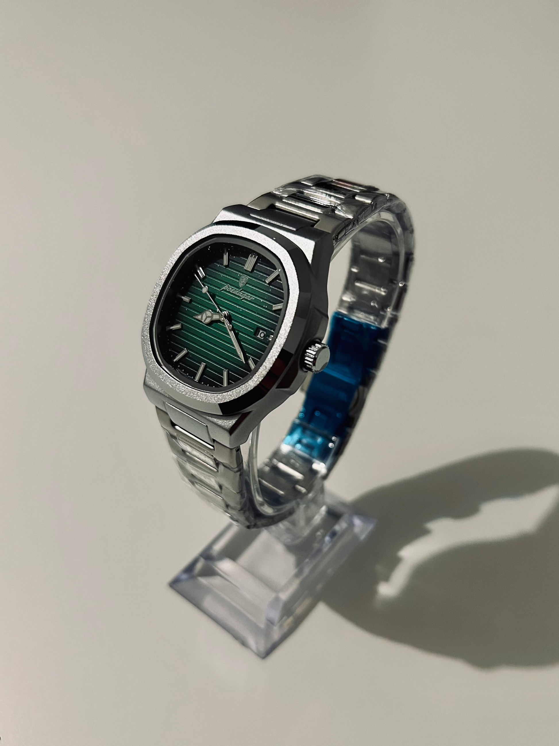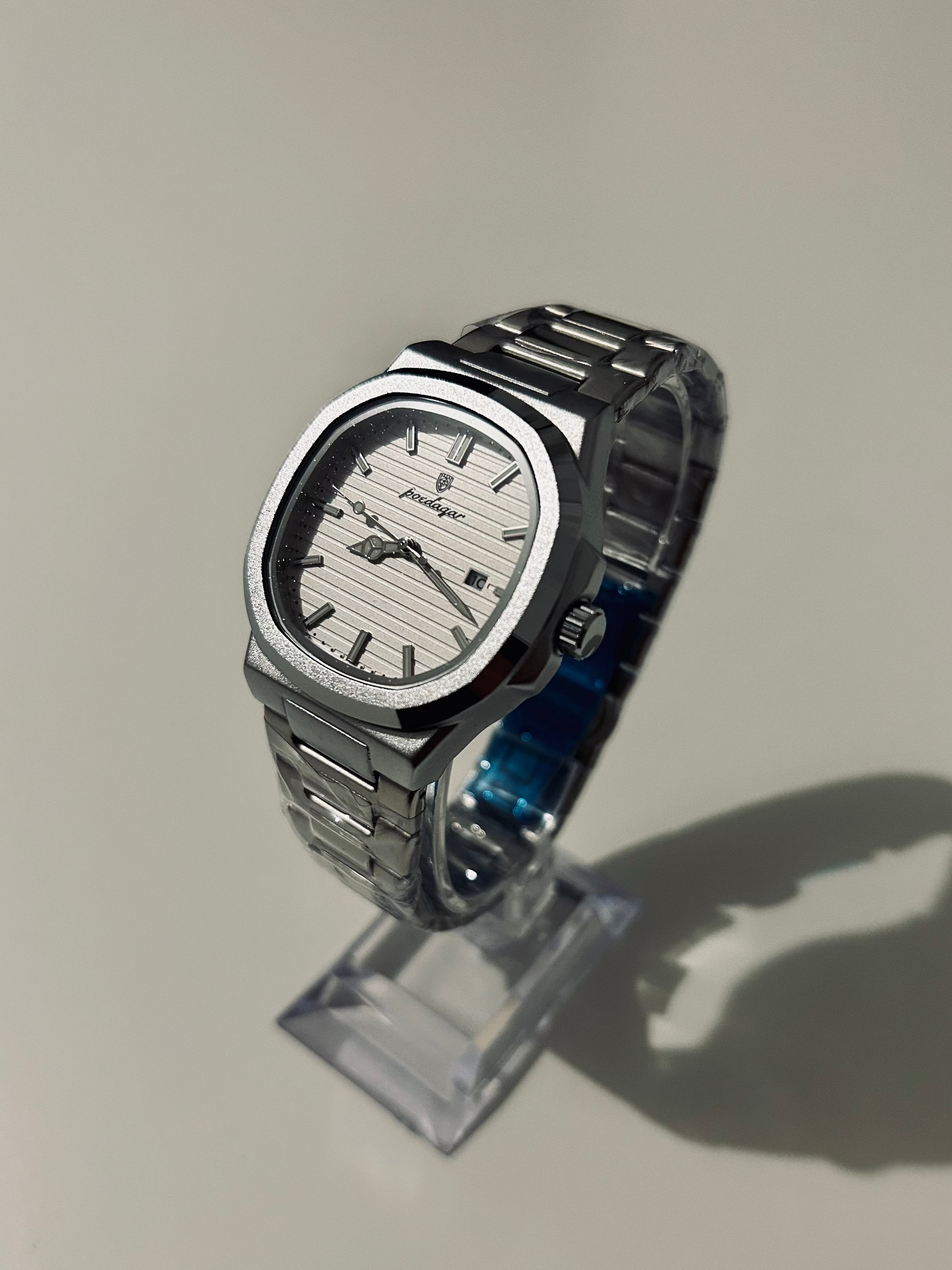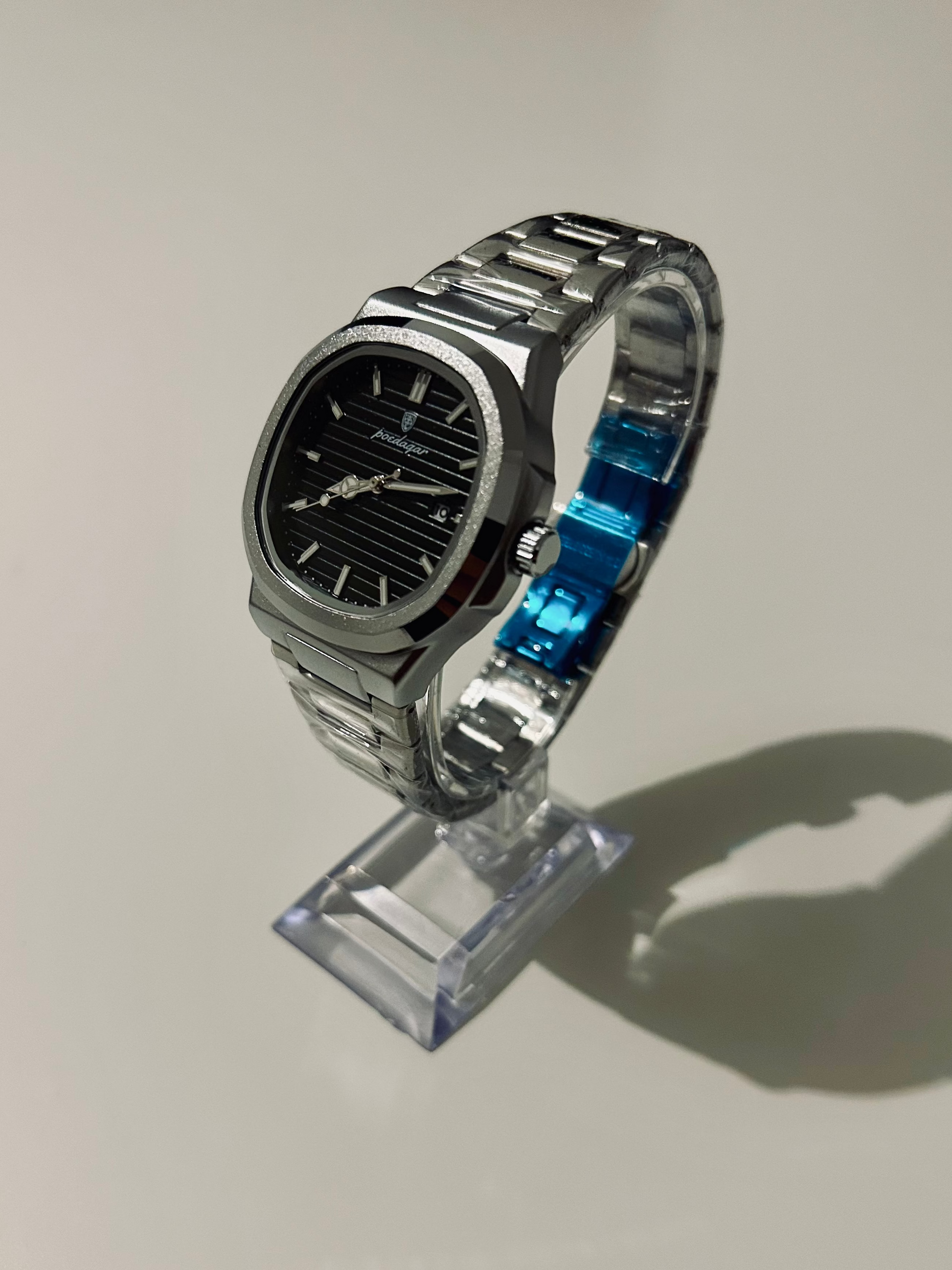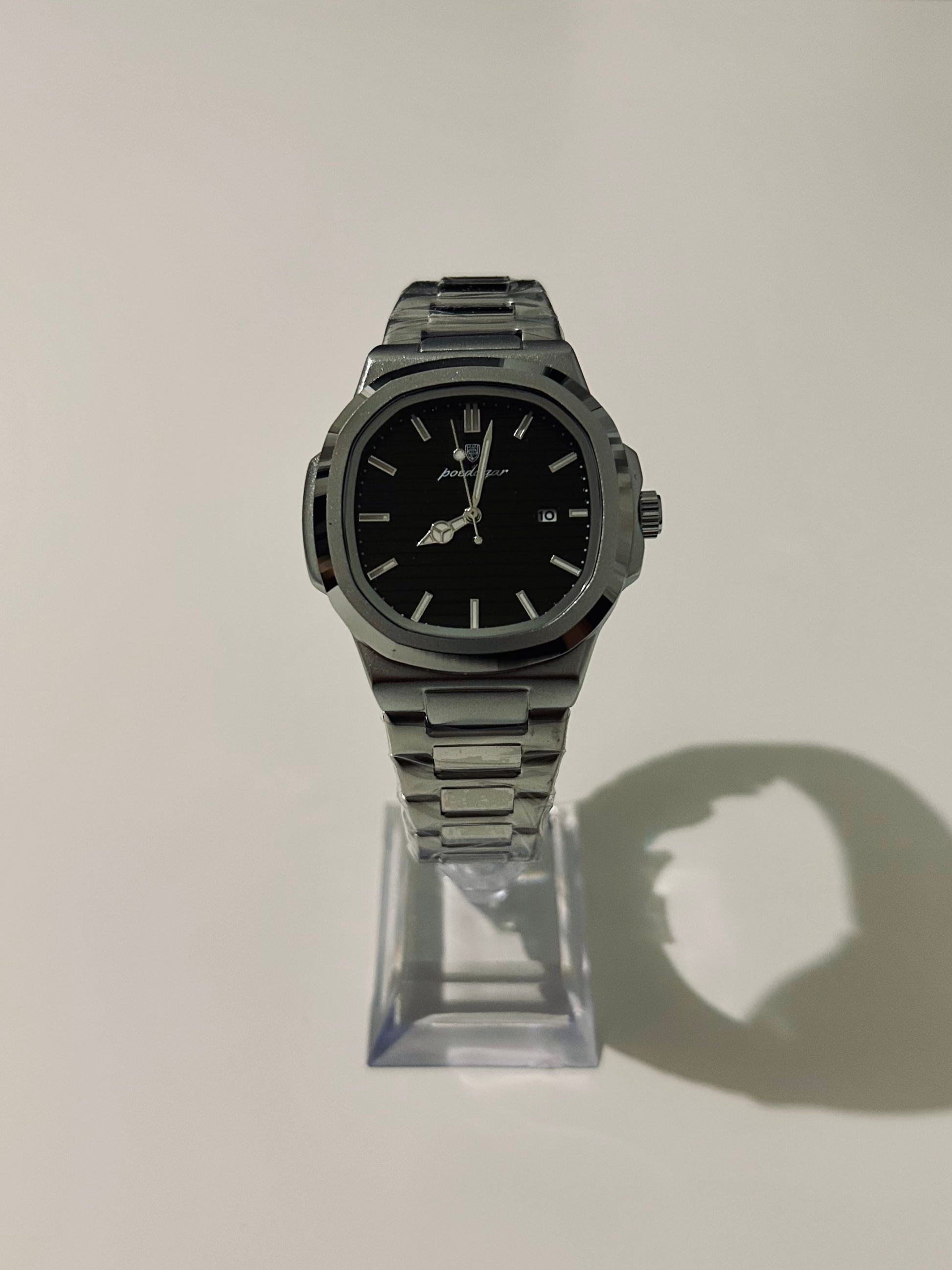 La forme carrée apporte un vrai plus. On sent tout de suite la qualité au poignet. C’est devenu ma montre préférée pour les rendez-vous pro.